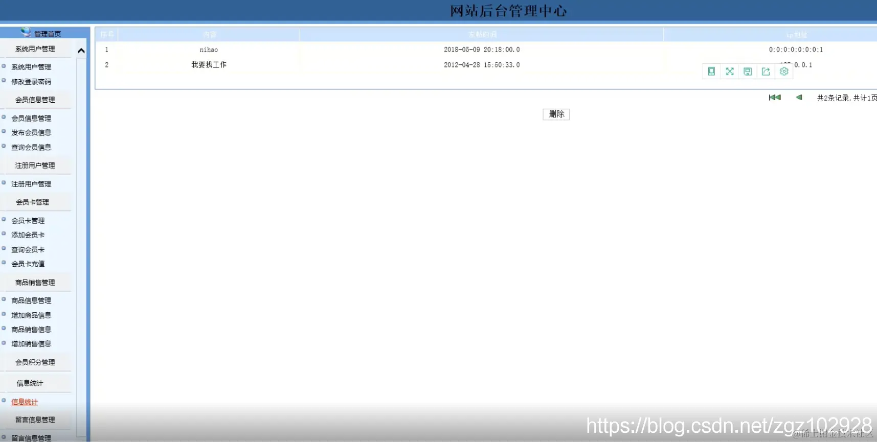 (2)后台管理界面: