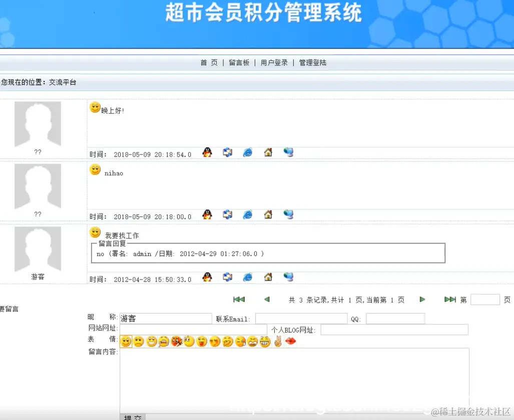 留言板模块:实现留言板信息的增加、修改、查看功能;