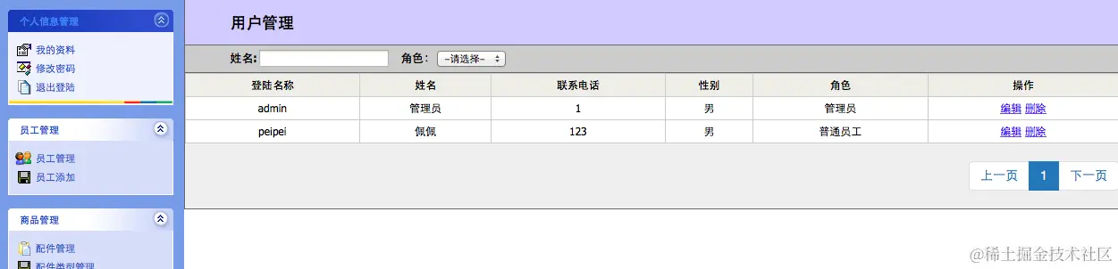 1.员工信息管理,该部分包含管理员、普通员工的信息。