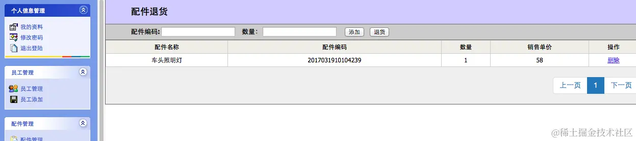 2.配件退还,用户不满意或者在退换期内可以进行配件退还操作。