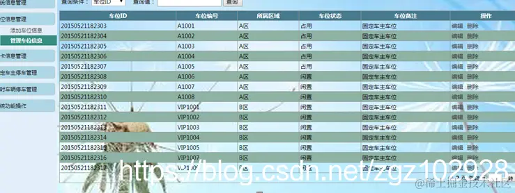 (2)车位信息管理模块:车位信息的增加、删除、修改和查询。