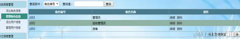 (1)系统信息管理模块:角色的增加、删除、修改和查询;用户的增加、删除、修改和查询。