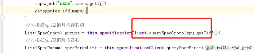 List<SpecGroup> groups = this.specificationClient.queryGroupWithPramId(spu.getCid3());