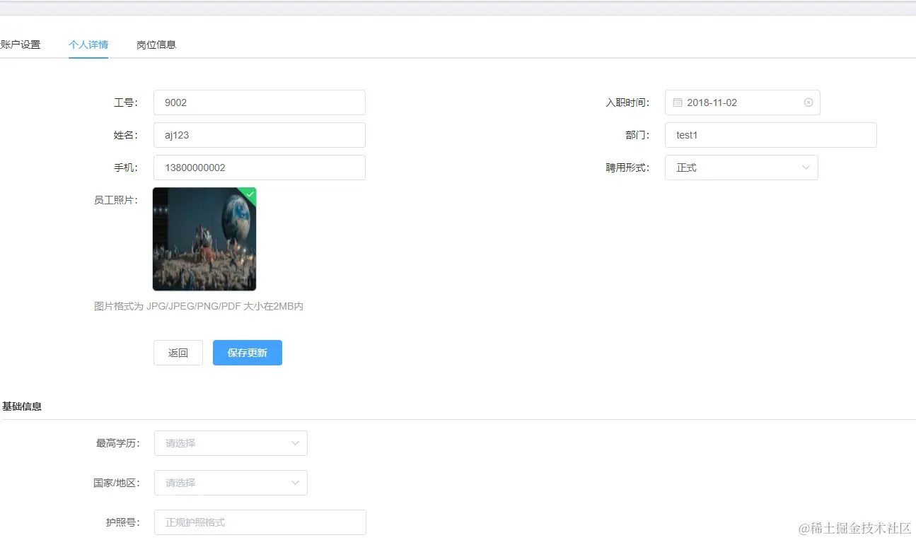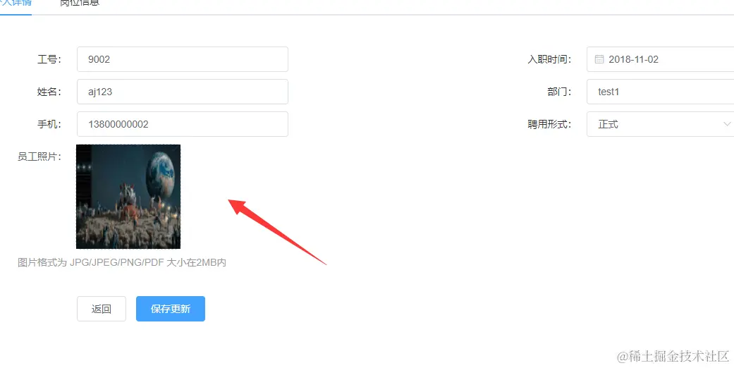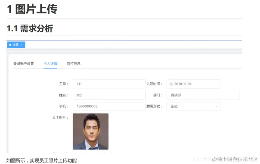 如图所示,实现员工照片上传功能