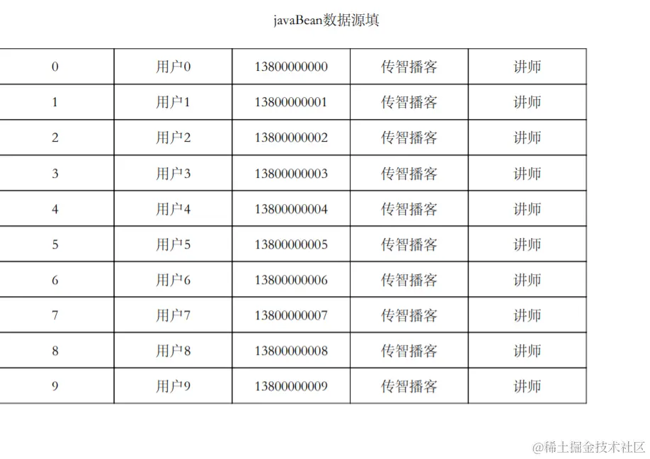 采用JAVABEN的形视进行数据填充。