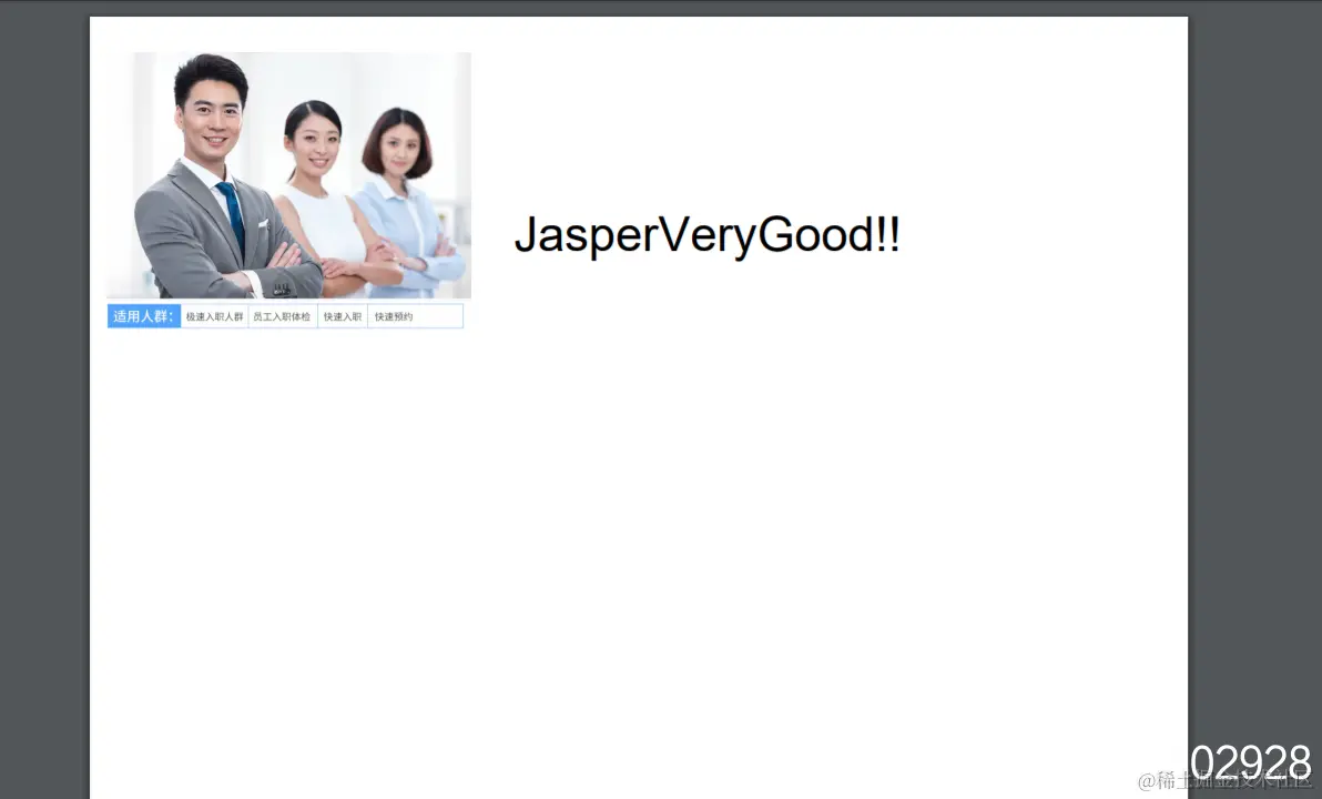 2. Jasper:由JRXML模板编译生成的二进制文件,用于代码填充数据。 解析完成后JasperReport就开始编译.jrxml文件,将其编译成.jasper文件,因为JasperReport只可以 对.jasper文件进行填充数据和转换,这步操作就跟我们java中将java文件编译成class文件是一样的