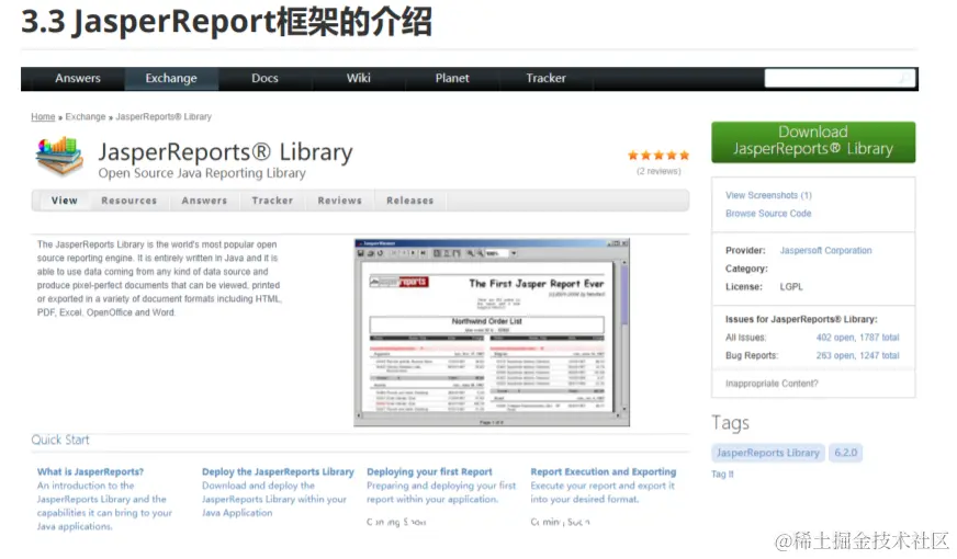 3. Jasper Report:是一个强大、灵活的报表生成工具,能够展示丰富的页面内容,并将之转换成PDF