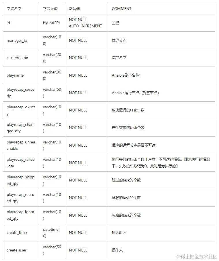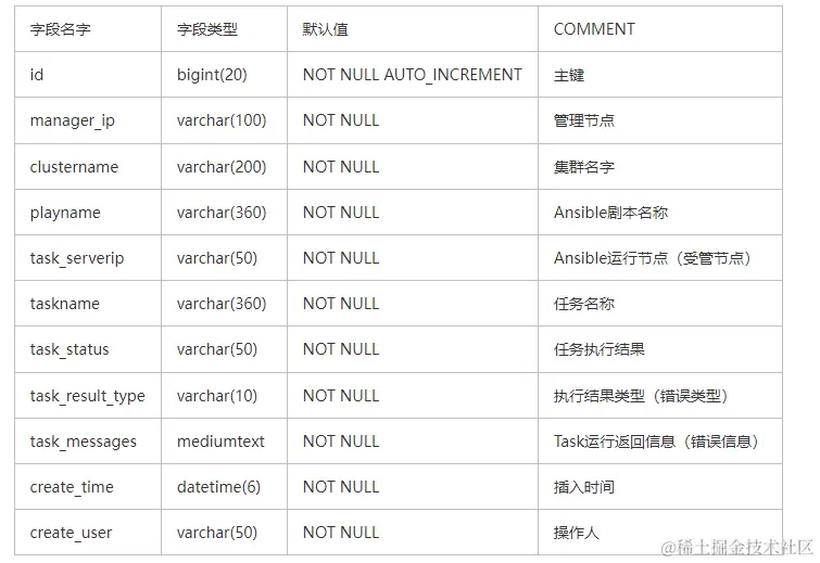 (1)可以根据需要,在表中增加一列ansible_cmd,用来保存执行的ansible的命令。