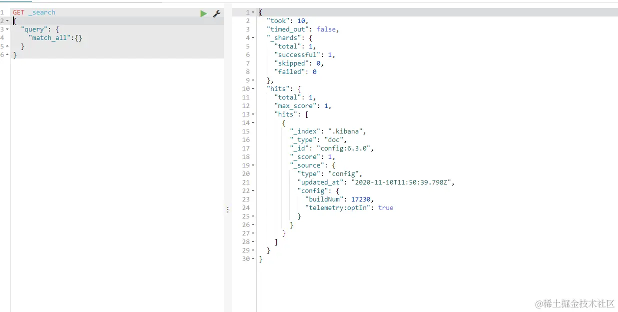 通过kibana查询数据成功
