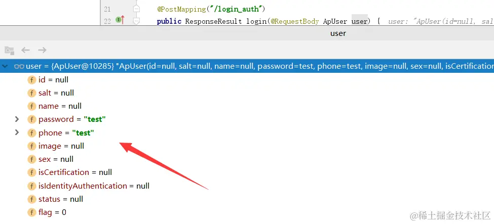 这个jackson封装需要提前在common工程中导入, 不导入后端获取不到数据下面是debug获取到前端各个数据的情况,首先获取用户名和密码的: