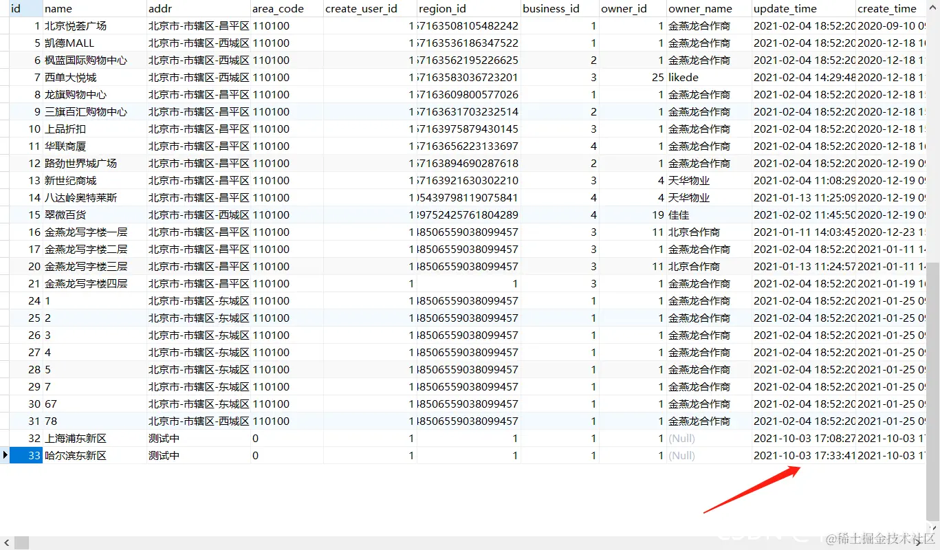 发送请求成功去库里面看一下,UPDATETIME和CREATETIME都是最新的时间,使用的正是MP的自动装载自动的方法