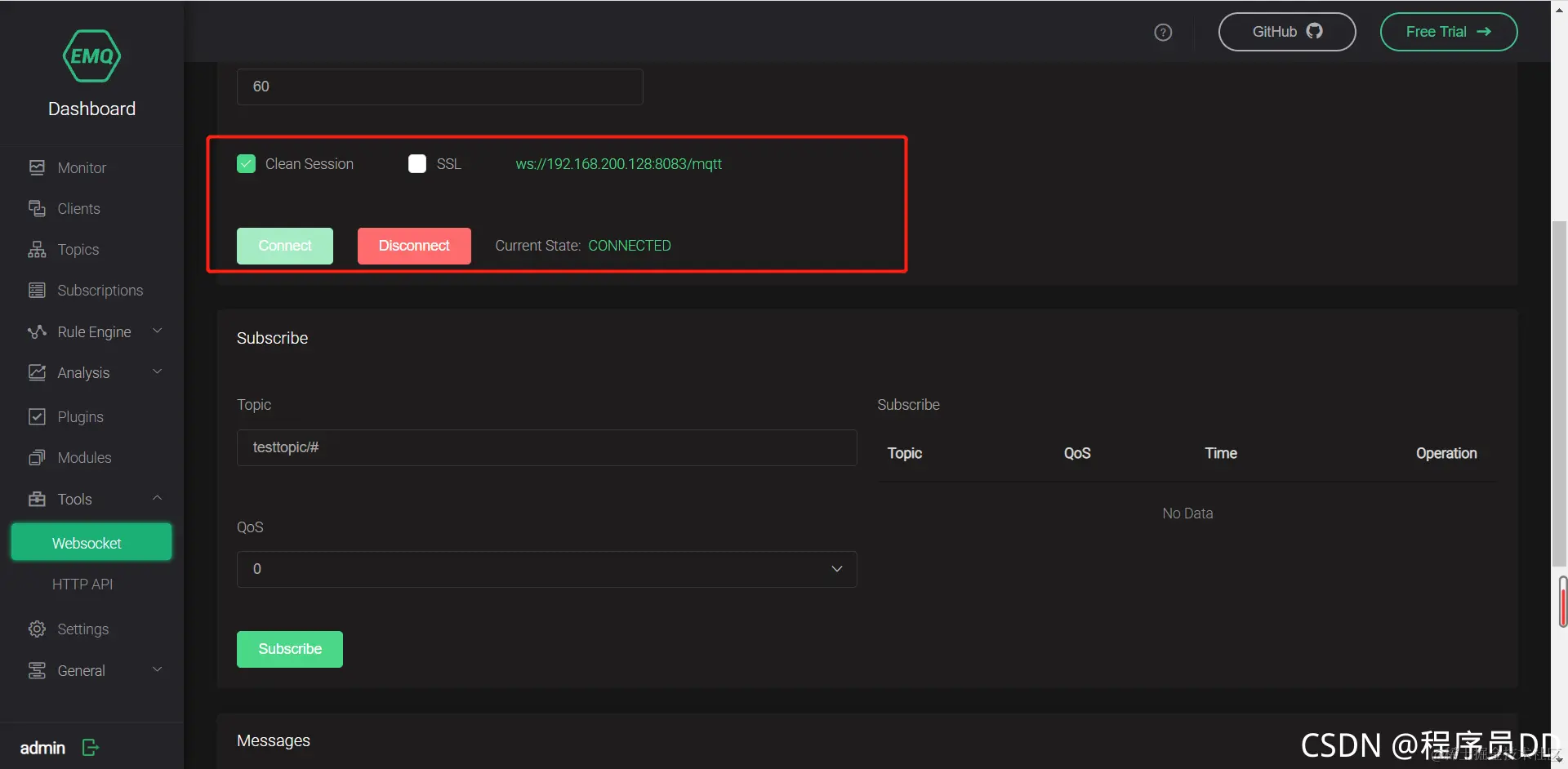 启动后通过对应的地址就可以在对应多的网址内访问,当然发布和订阅消息比RabbitMq更简单,在后面的WebSocket进行连接,连接正常就可以进销消息的订阅和发布,这个启动之后,数据库可以直接通过docker里面的镜像直接访问,用navcate直接连接就行,对了这虚拟机的密码是root,123456,数据库的用户名密码是root,root123