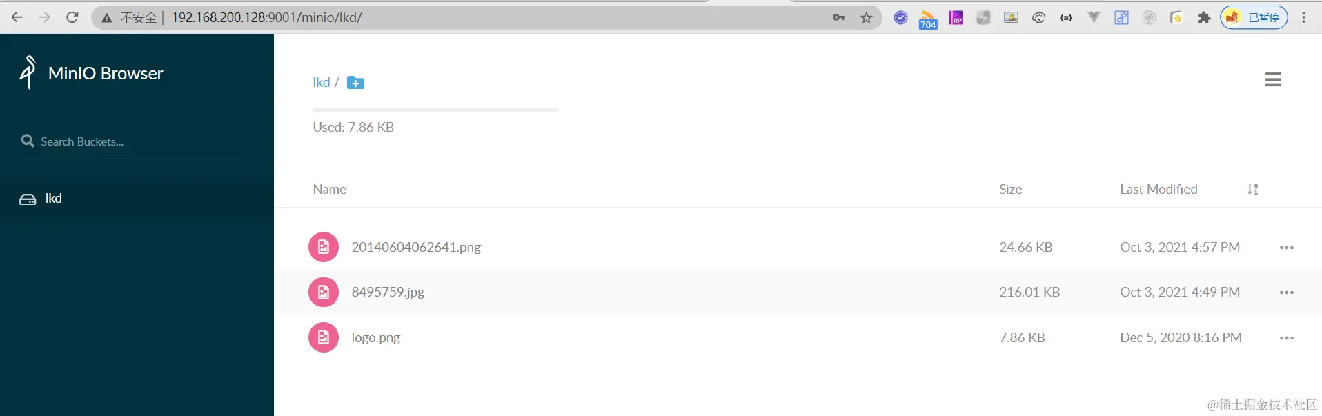 拿到对应的IP,进行浏览器访问,就可以看到对应的加载成功到MINIO的容器里,简直不要太方便了,并且可以直接访问