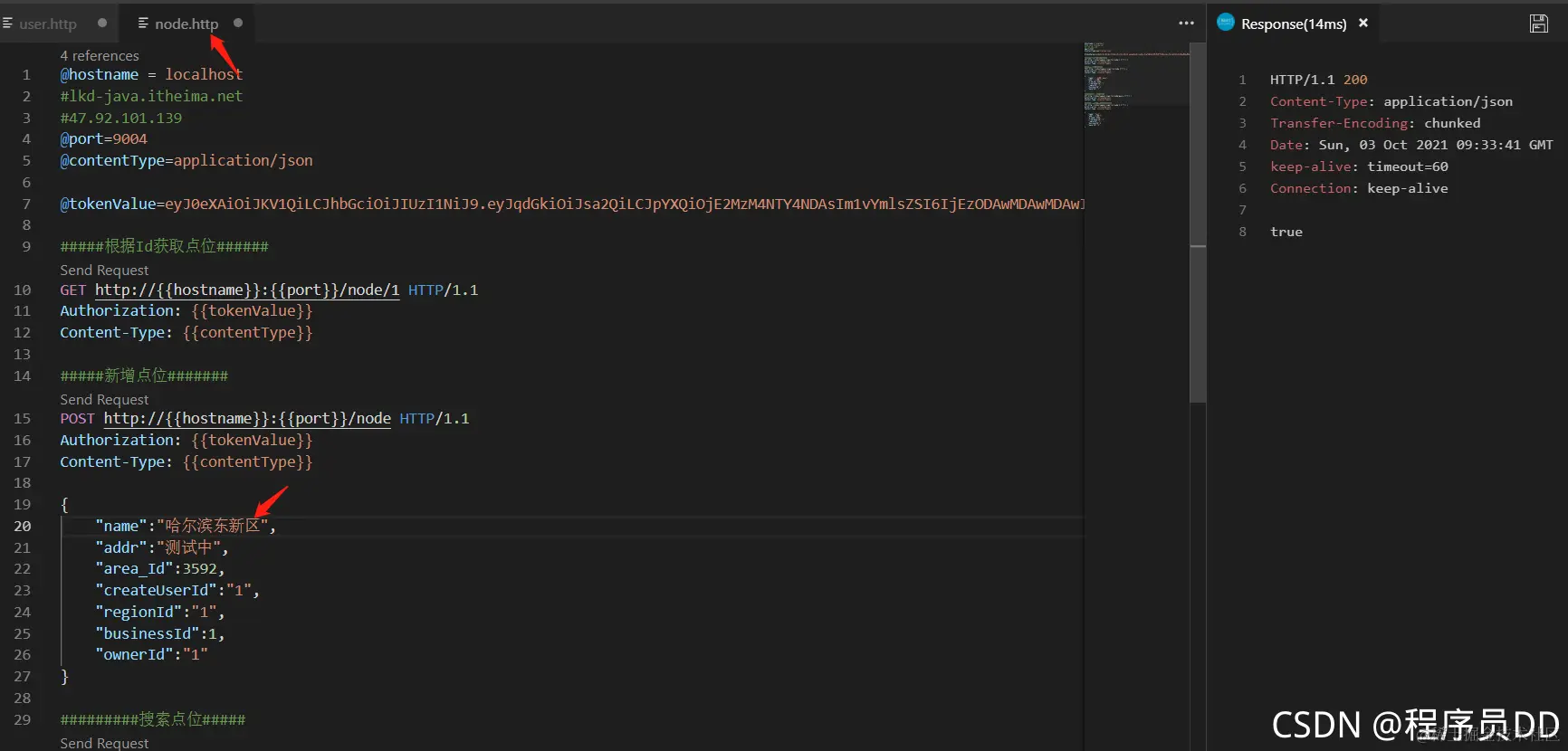 最后就是那个字段的自动填充设置,像一般的UPADETE TIME,CREATE TIME这种时间没有必要填充都填充当前的SYSDADTE,就可以了,这个封装的也是非常的不错,我们可以测试一下,这个要用VSCODE加载对应的node接口测试脚本