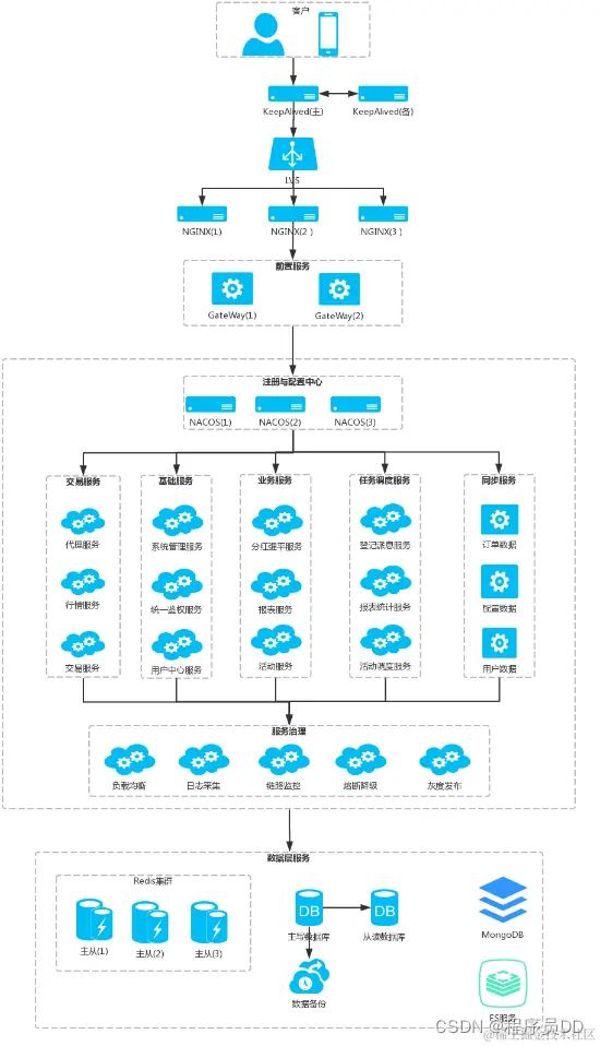 服务高可用解决方案(KeepAlived+Lvs+Nginx). 微服务网关解决方案(Spring Cloud Gateway). 微服务高效通讯解决方案(SpringBoot2.X+gRpc+Protobuf+Netty). 微服务注册发现与配置管理解决方案。(Nacos集群+Mariadb+Nginx). 微服务熔断降级限流解决方案(Sentinel + dashboard). 微服务分布式事务解决方案(Seata Server). 微服务异步消息架构解决方案(RocketMQ集群). 微服务链路监控解决方案(Cat集群). 微服务统一鉴权解决方案(OAuth2+Redis+TokenEhancer)
