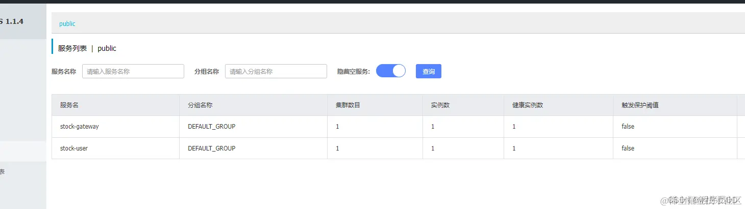 启动工程并检查分别启动stock-gateway和stock-user两个工程, 启动正常可以在Nacos控制台看到两个服务: