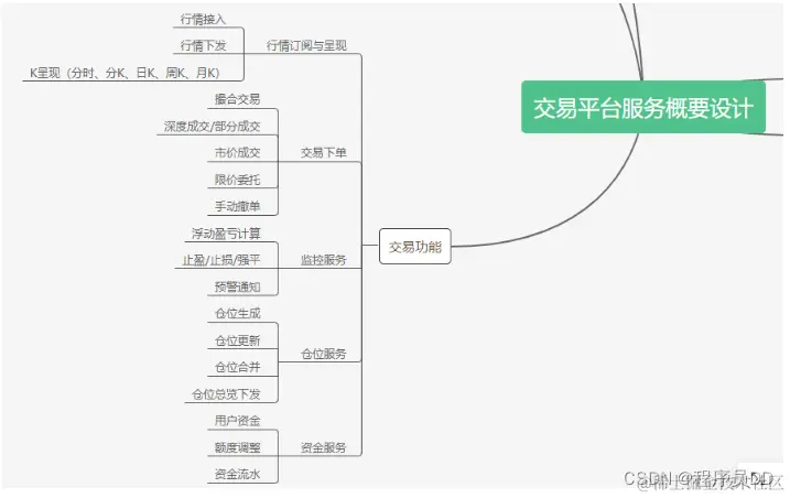 交易服务群代理服务负责交易与行情的处理, 采用Netty对接, 内部交易与行情微服务群采用SpringBoot2.X+Protobuf+gRpc连接调用, 交易是整个项目的核心, 主要分为代理服务, 负责客户端接入与数据的分发;行情服务,负责第三方行情源接入, 客户端的订阅与下发处理;交易服务, 处理核心交易逻辑, 包含撮合、深度、委托挂单、撤单等功能。还有仓位服务、资金服务、监控服务等,支撑完善交易服务功能。