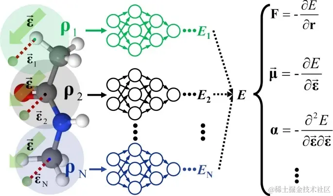 与此同时,机器学习 (ML) 在解决高维化学问题中取得了不俗的成果。然而,大多数机器学习模型将势能和系统对电场的响应分割看待,忽略了系统的场相关性。