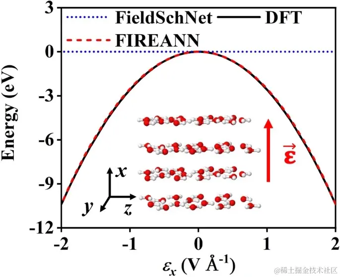 而在 FIREANN 框架中,由于模型只在有电场的情况下进行了原子力的训练,系统的能量梯度其实是不受影响的,因此轻松绕过了这一问题。
