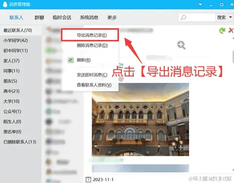 步骤2:在消息管理器中,选择需要导出聊天记录的个人或群。