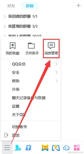 步骤1:在电脑QQ上打开【消息管理】,可以在QQ主界面找到该选项。
