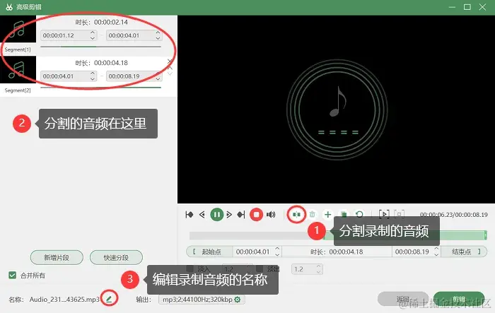 第3步:录音完成后,录音文件会自动保存到默认的录音文件夹中,您可以接着在软件上预览录音,并对它进行基本的编辑或分享。