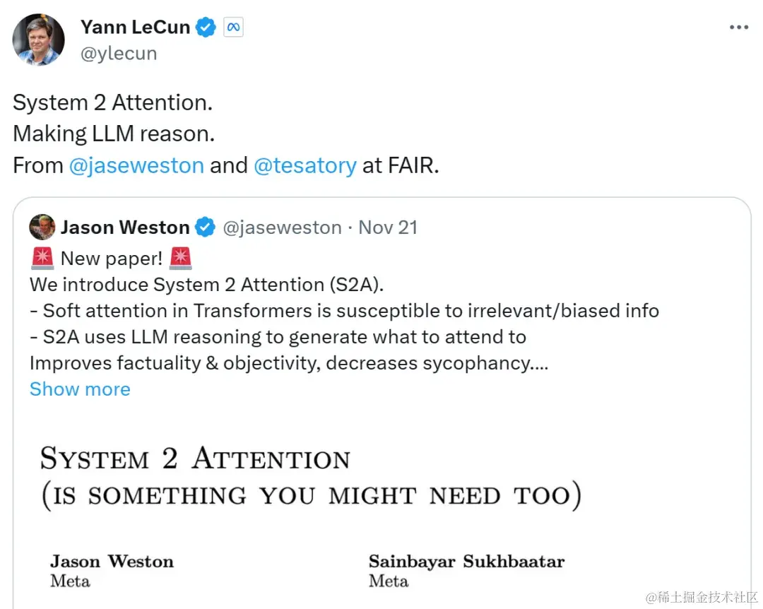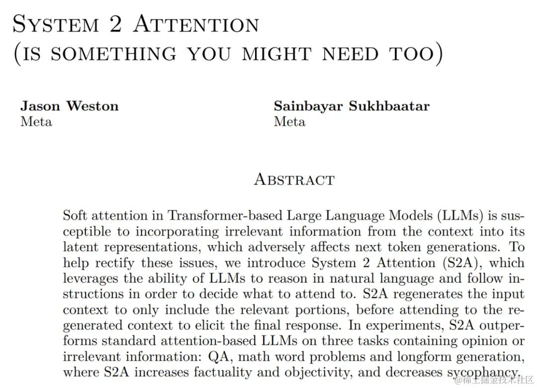 前言 作者表示,这种全新注意力机制(Sytem 2 Attention)或许你也需要呢。