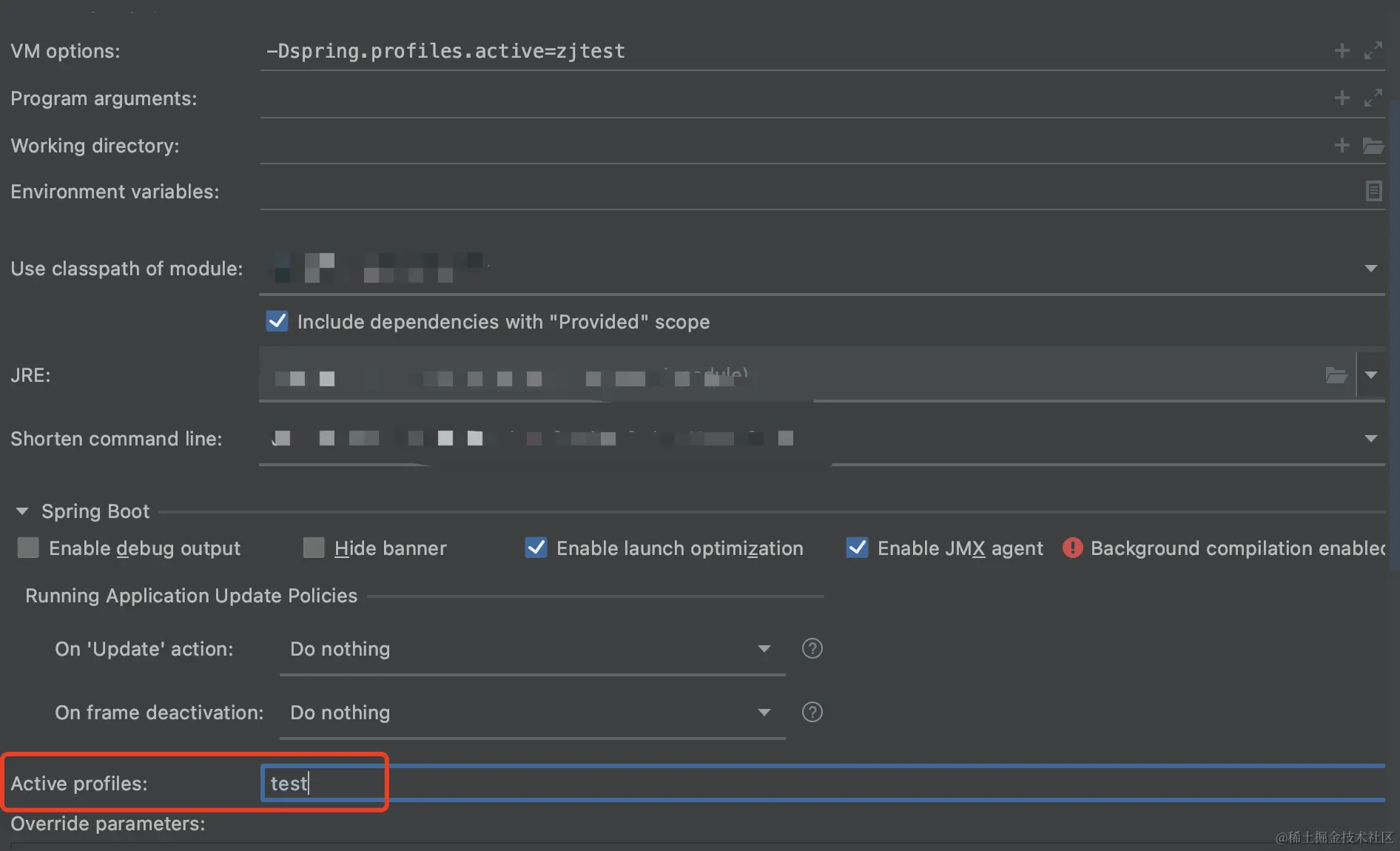 或者找到 Active profiles ,直接在后面填写对应的配置名称也可以。