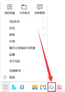 步骤3:在电脑上登录QQ,在QQ主页点击右下角的【云朵】图标,进入【腾讯微云】页面。