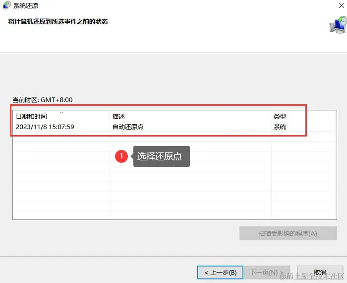 第三步:按照系统还原向导的指引,选择要还原的日期和时间点,然后按照提示完成还原过程。