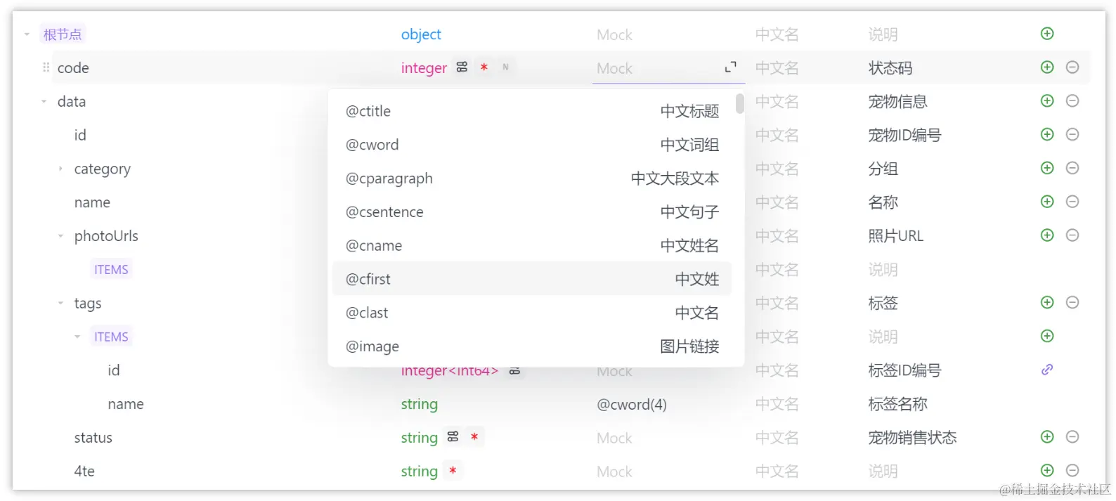 更为重要的是,Apifox 能够 Mock 数据,其集成了 Mock.js 库,允许你自定义规则,并且可以编写脚本,强大的 Mock 功能 可以让前端开发人员不再苦苦等待后端提供接口,自己就能提前造各种各样的数据出来,可视化操作让你点点鼠标就能生成可观的人性化数据。