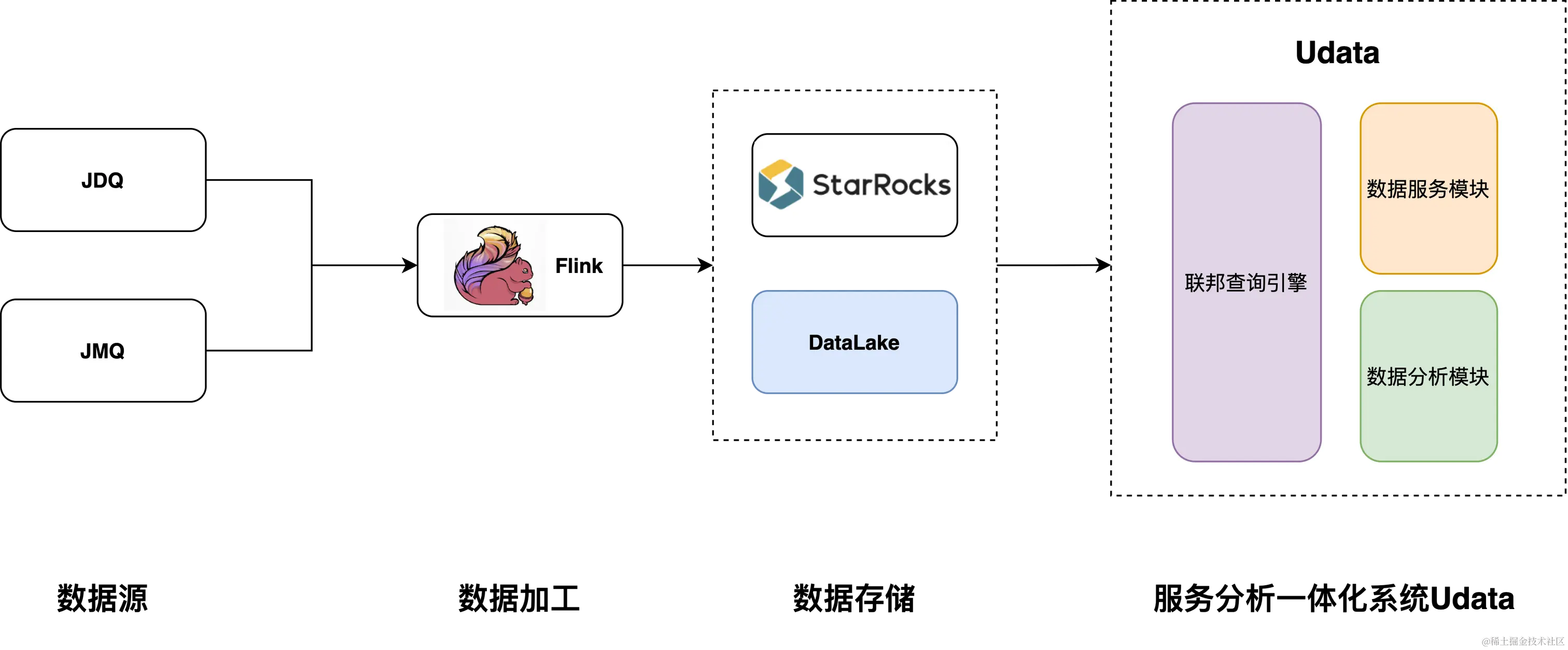 改造后,我们在数据存储层引入了StarRocks,StarRocks提供了极速的单表和多表查询能力,同时以StarRocks为基础我们打造了统一查询引擎,统一查询引擎根据京东的业务特点增加数据源和聚合下推等功能,UData在统一查询引擎的基础上统一了数据分析和数据服务功能。
