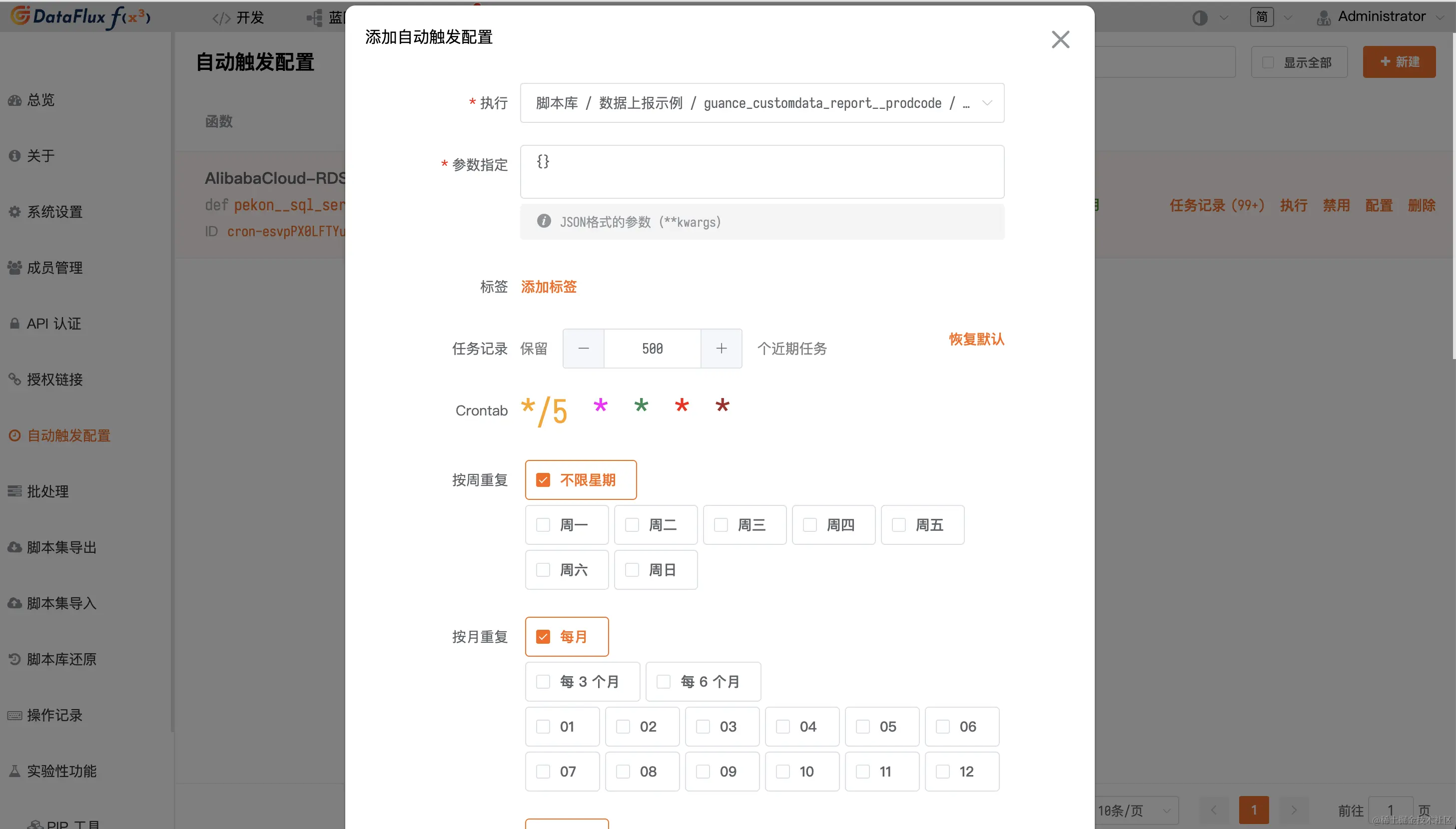 配置完成后,任务定时触发以及历史任务的信息记录,均可通过DataFlux Func 自动触发配置菜单进行管理和查看。仅需几步点击操作,相比于其他IDE环境具有更好的易用性和场景实用性。