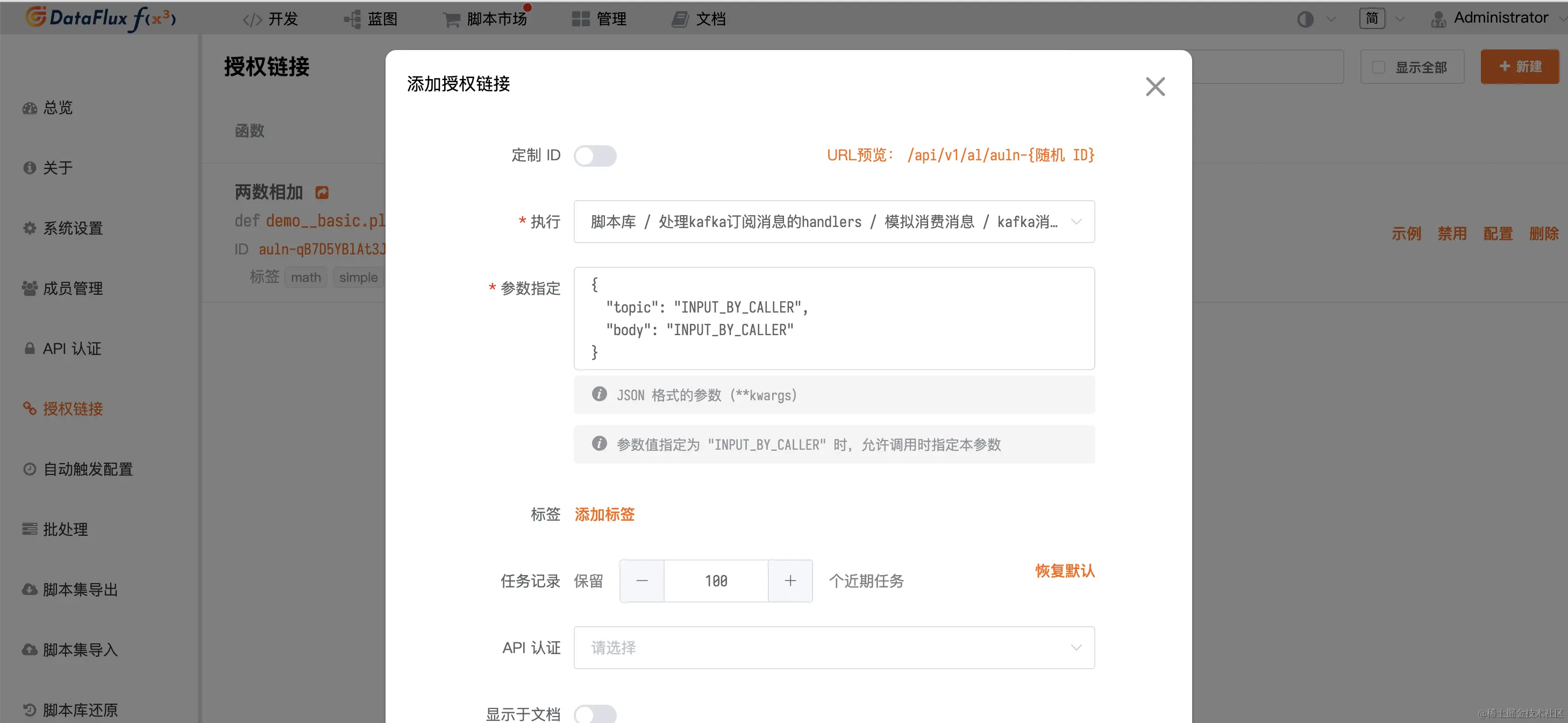 同时,与接口访问相关的调用示例、鉴权、熔断限流等功能均一并提供给开发人员,无需自行编码实现或进行维护管理。真正做到了数据整合处理场景的开箱即用: