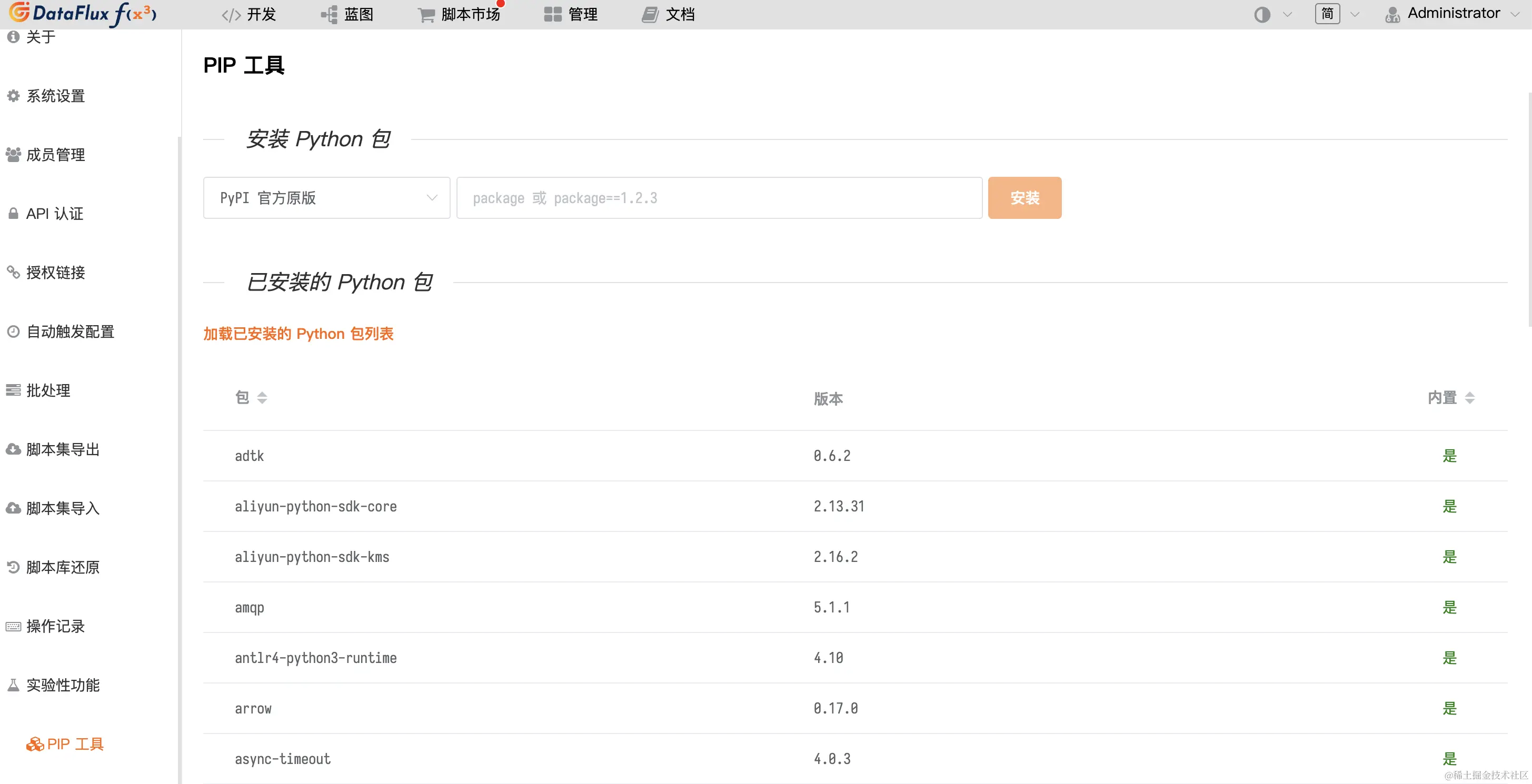 除已预装的数据处理包外,如有其他需要增加安装的数据包,开发者也可通过PIP工具安装额外的数据包。最大程度提供对数据处理开发的工具支持: