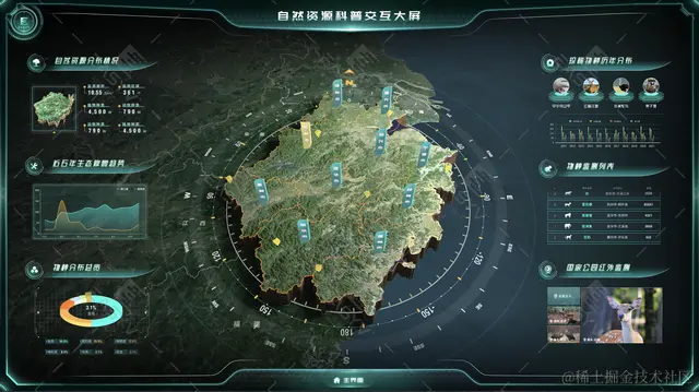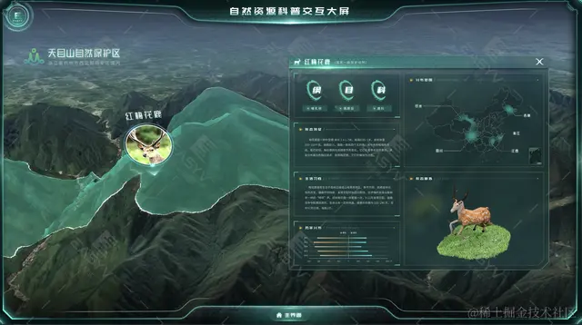 易知微推出自然资源科普交互大屏,该大屏支持地图上杭州市的点击下钻,展开天目山自然保护区3D模型,贴牌展示梅花鹿、竹叶青等保护动物的分布,同时点击后进一步展开动物开发利用和保护等重要信息。可应用于教育科普、科研决策、旅游宣传等多种场景。它不仅提供了丰富的信息展示和互动体验,还可以激发观众的参与热情,让他们在参与中真正了解和体验自然资源的重要性。相信随着科技的不断发展和应用,科普交互大屏将在未来发挥更加重要的作用,为保护自然资源做出更大的贡献模板使用:easyv.cloud/m/market/91…