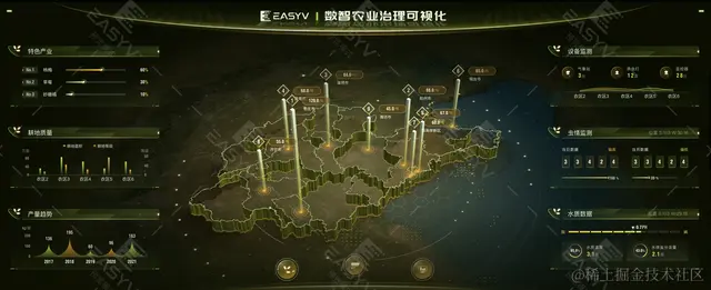 易知微EasyV数字孪生可视化平台以低代码的方式,提供数据源实时接入、拖拽式数字面板呈现、三维模型及地理信息孪生场景构建等可视化应用的协同搭建能力。平台内置200+官方自研的可视化标准组件和超过1000+的行业应用模板供用户直接使用,只需通过简单的拖拉拽即可完成复杂交互、视觉震撼、实时数据的可视化应用搭建,能够以更低的成本、更高的效率满足客户指挥中心、数字展厅、数字化管理等各类应用场景的建设需求。