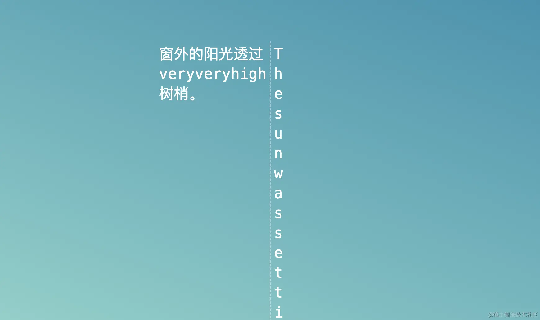 有一点需要注意,对于中英文混排的情况,如果剩余空间不够放下整个英文单词,并不会对单词进行截断,而是在单词前面的中文处换行,于是就会出现留白: