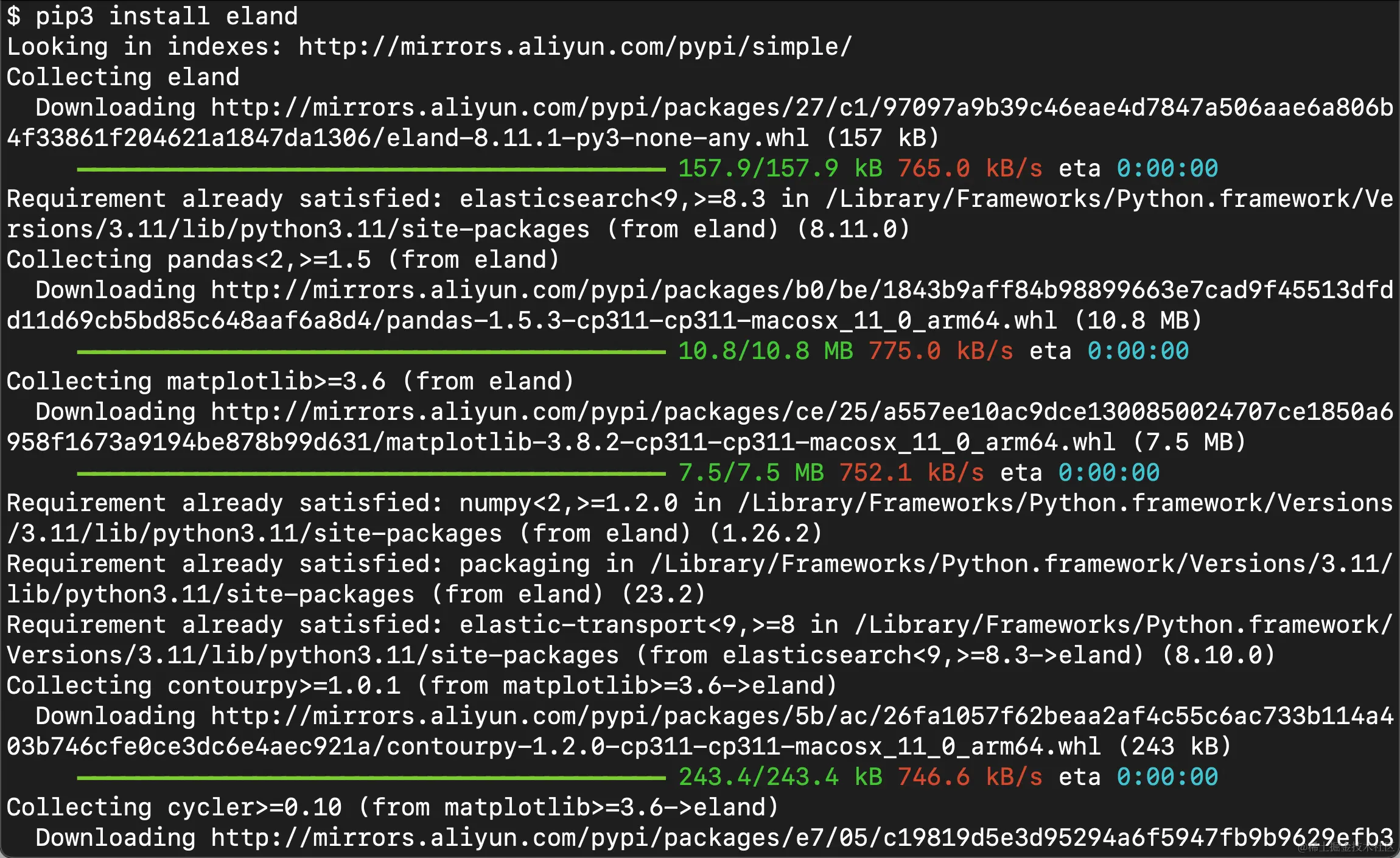 我们使用如下的命令来安装 eland: