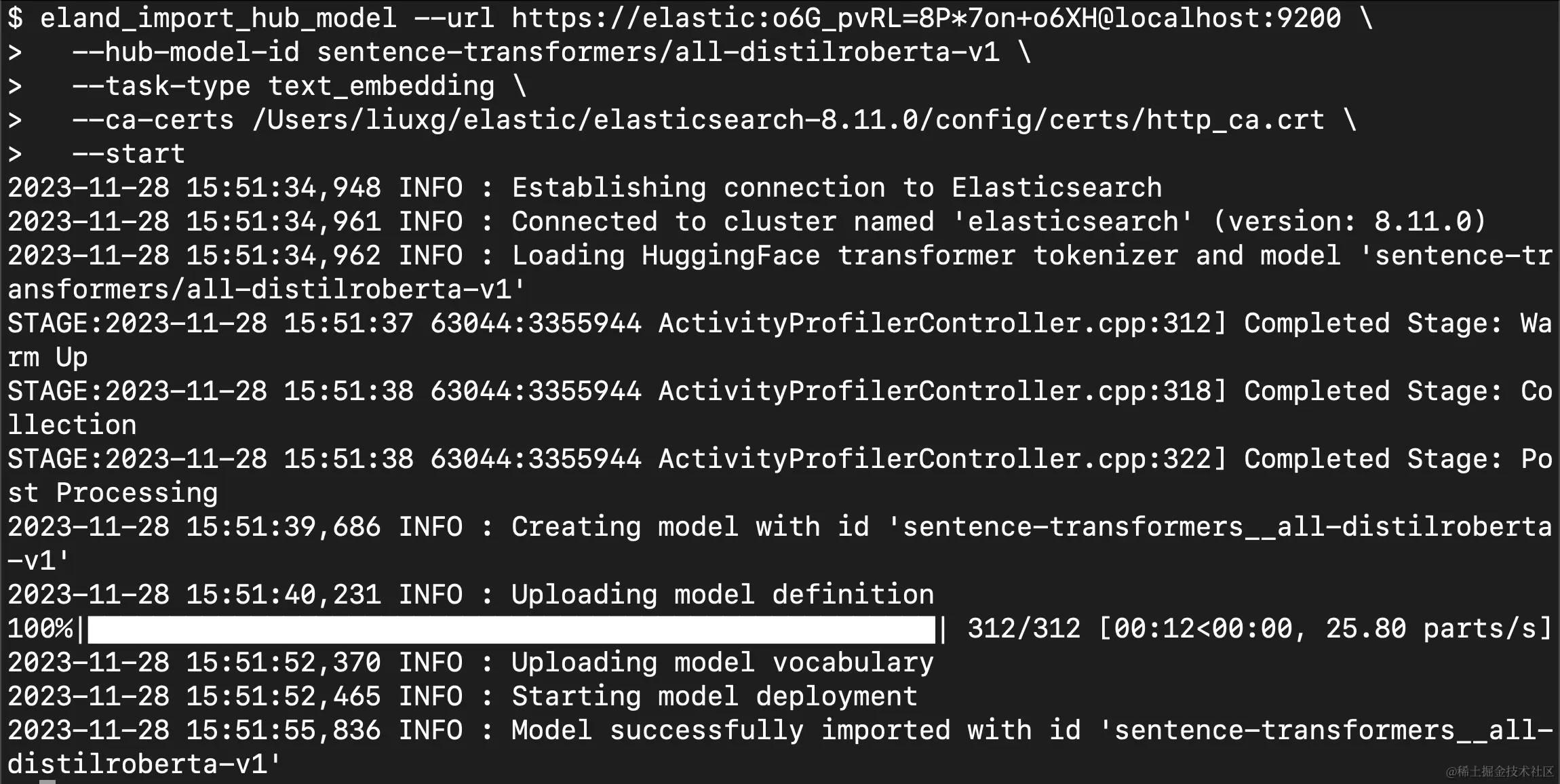 1. eland_import_hub_model --url https://elastic:o6G_pvRL=8P*7on+o6XH@localhost:9200 \