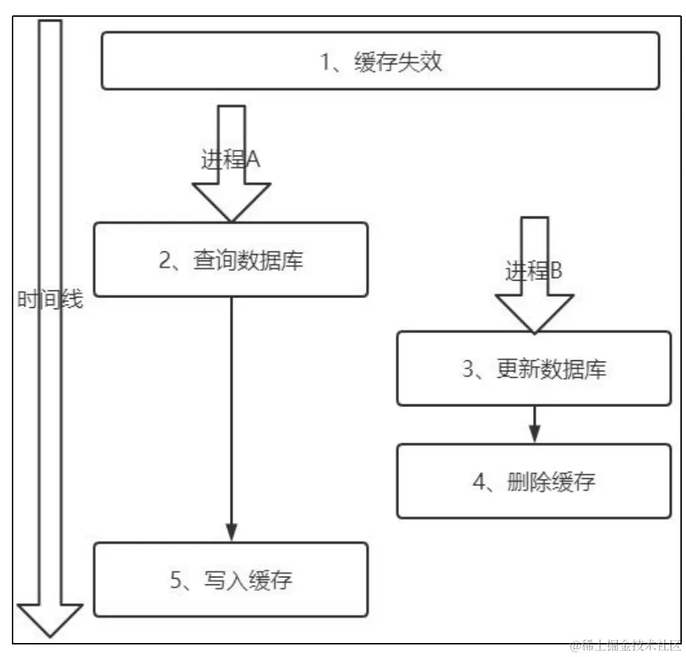 - 更新数据库 + 删除缓存的时间(步骤 3-4),要比读数据库 + 写缓存(步骤 2 和 5)时间短