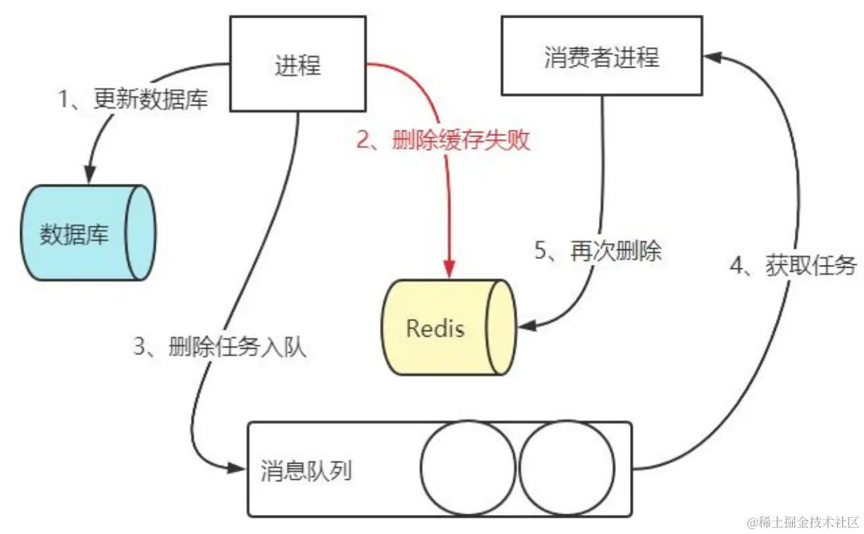 (3)休眠 1 秒,再次淘汰缓存 这么做,可以将 1 秒内所造成的缓存脏数据,再次删除。