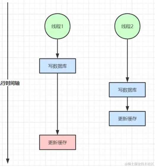 线程1 虽然先于 线程2 发生,但 线程2 操作数据库和缓存的时间,却要比 线程1 的时间短,执行时序发生「错乱」,最终这条数据结果是不符合预期的。