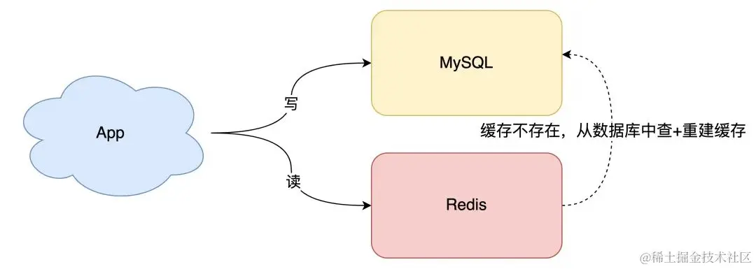 - 读请求先读缓存,如果缓存不存在,则从数据库读取,并重建缓存