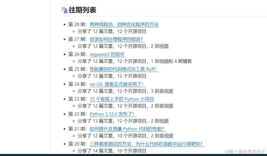 如今在我空闲的时候我还是会上python-weekly,不仅是学习python知识,同时还可以看一些视频和热门话题等等。