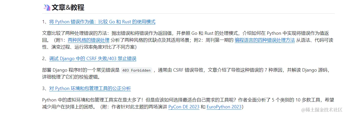 点开来后就是看到目录,然后我就慢慢的往下滑去寻找自己需要的关于Django部署报错的案例,发现没有关于Django部署的文章,但是有一个标题吸引我:“应该如何处理程序的错误”。我就好奇的点了进去。