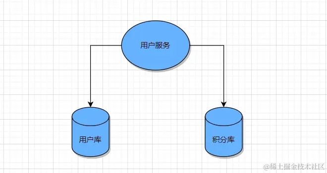 当单体系统需要访问多个数据库(实例)时就会产生分布式事务。 比如:用户信息和积分信息分别在两个MySQL实例存储,用户管理系统删除用户信息,需要分别删除用户信息及用户的积分信息,由于数据分布在不同的数据实例,需要通过不同的数据库链接去操作数据,此时产生分布式事务。