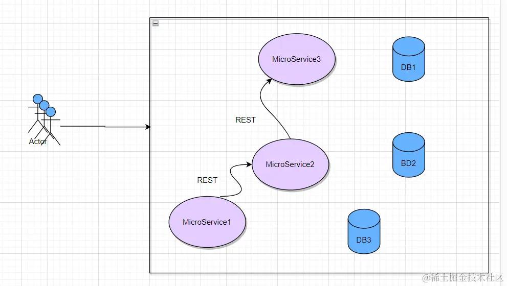 随着互联网的快速发展,软件系统由原来的单体应用转变为分布式应用(大致如下图):分布式系统会把一个应用系统拆分为可独立部署的多个服务,因此需要服务与服务之间远程协作才能完成事务操作,这种分布式系统环境下由不同的服务之间通过网络远程协作完成事务称之为分布式事务,