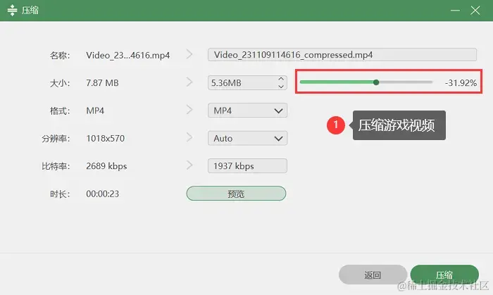 步骤4:如何您觉得录制的游戏视频过大,不利于分享,可以在历史记录页面对视频进行压缩,直到自己满意为止。