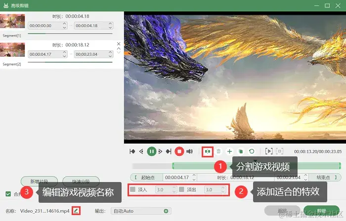 步骤3:调整完毕后就可以开始录制游戏了,录制完毕后,点击结束按钮,您可以选择直接保存游戏视频,或对视频进行剪辑。